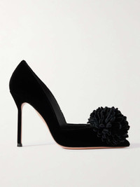 EDITORS'NOTES Aquazzura's 'Couturier' pumps are playful and glamorous with their frothy floral applique. They're made from velvet in tonal black, so they're classic and easy to style. SIZE & FIT - Fits true to size, take your normal size - Italian sizing DETAILS & CARE - Black velvet - Heel measures approximately 105mm/ 4 inches - Slip on