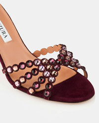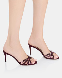 The Tequila Mule returns in a sumptuous new mood, crafted from blackberry-toned suede and featuring scalloped straps embellished with radiant tonal crystals. This minimal yet glamorous style sits atop a comfortable mid heel, effortlessly bridging the gap between evening elegance and after-dark allure. Perfect for making an entrance – and staying out late. Covered stiletto mid heel Open toe Slip on Signature logo detailing Product: TQLMIDM0-SUE-BKR Made in: ITALY