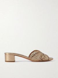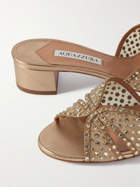 Crystal Lover 35 embellished mesh and leather mules Gold