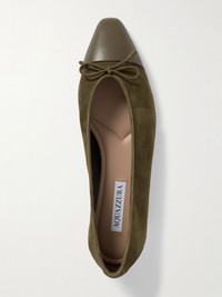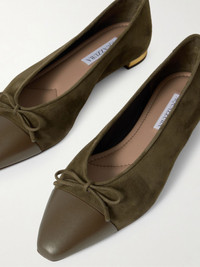 Gioia bow-detailed leather-trimmed suede ballet flats Army green