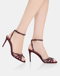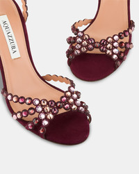 Glittering gems lend our Tequila Sandals a dose of timeless glamour, perfect for parties and elegant evenings. Made in Italy from ultra soft suede in a sophisticated blackberry hue, this open-toe pair is adorned with gleaming tonal gems along its slender straps and set on a slim stiletto heel. Pair yours with a minidress to steal the show. Covered stiletto heel Leather lining Padded leather insole Leather sole with gold- dipped pineapple logo Product: TQLMIDS0-SUE-BKR Made in: ITALY