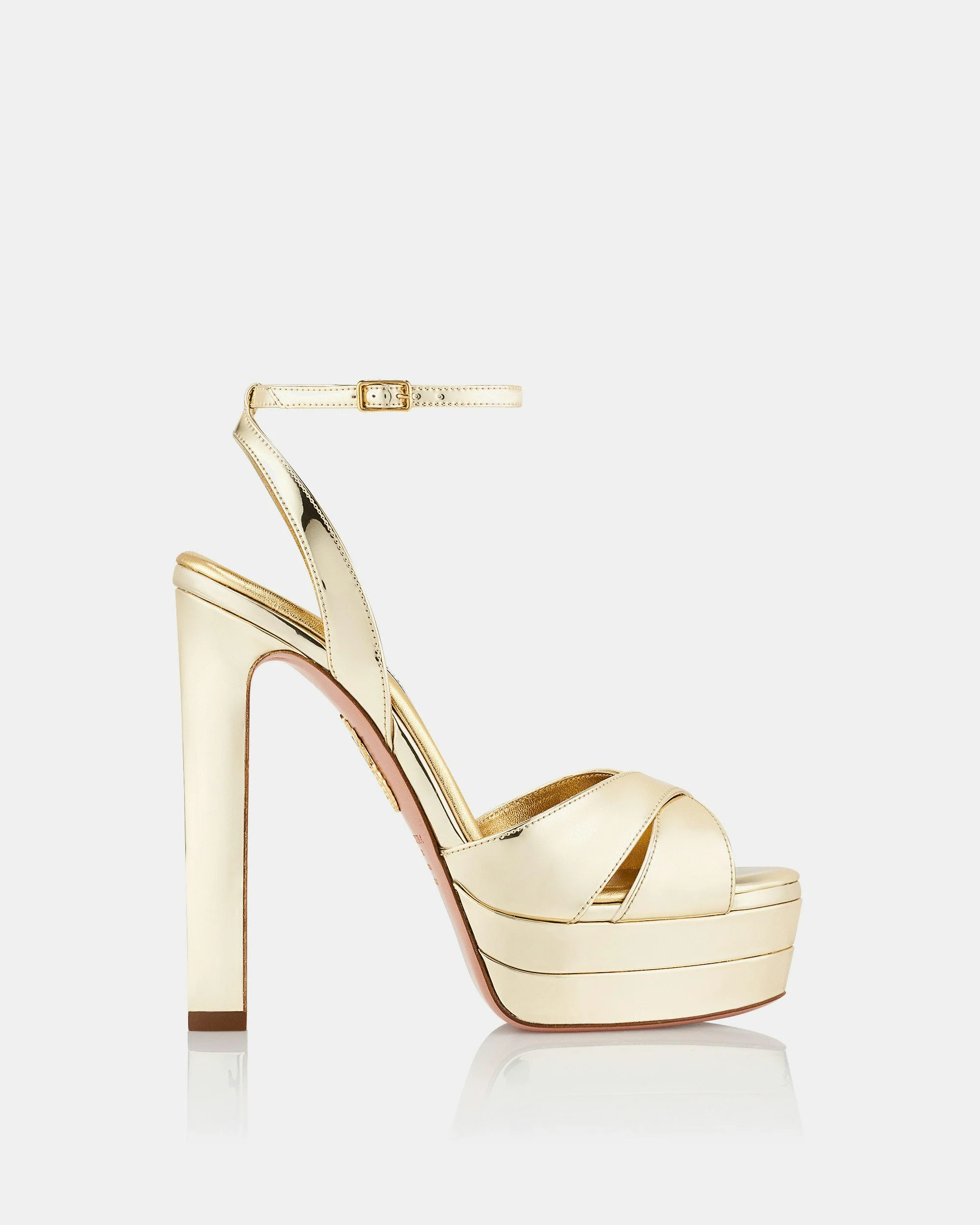 Let us introduce you to the shoes of the season: our Divine Plateau Sandals. Made from mirrorg old leather effect, they have elegant crossover straps and vertiginous 130 mm heels – perfect for balancing long hemlines. Bonus point? The thin ankle strap makes the legs look slimmer. Adjustable buckle closure Block heel Padded leather insole Signature logo detailing Product: DVEHIGB0-SSY-SOG Made in: Italy