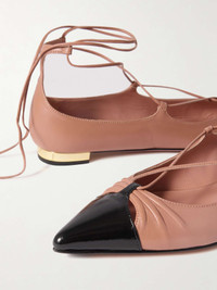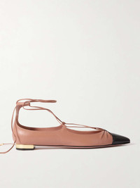 EDITORS'NOTES Aquazzura’s footwear is always meticulously crafted in Tuscan workshops using traditional techniques, proving its commitment to quality. These ‘Gabi’ flats are made from antique-rose leather and have sleek pointed toes with gathered and cutout details. The lace-up ties wrap around the ankle, while the gold-tone heels add a slight lift. SIZE & FIT - Fits true to size, take your normal size - Italian sizing DETAILS & CARE - Slight heel - Antique-rose and black leather (Lamb, Goat) - Ties at ankle - Designer color: Powder Pink/ Black