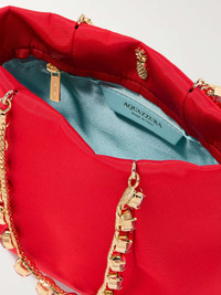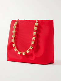 EDITORS'NOTES A nod to '90s glamour, Aquazzura's 'Galactic' tote is the perfect evening companion. It's been made in Italy from 'Love Red' faille with darted seams and has crystal-embellished gold-tone handles. There's enough space for your phone, cardholder and a few cosmetics. SIZE & FIT This item’s measurements are: - Handle Drop: 14cm / 5.5in - Height: 16cm / 6.3in - Width: 19cm / 7.5in - Depth: 6cm / 2.4in DETAILS & CARE - Red faille - Top handles - Internal zipped pocket - Satin lining - Open top - Designer color: Love Red/ Light Gold - Comes with a dust bag - Weighs approximately 0.4lbs/ 0.2kg