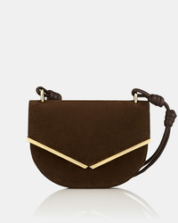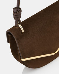 A signature accessory, such as this Galerie Crossbody Bag, makes a forever addition to any wardrobe. Its sophisticated silhouette balances a rounded base with a sharp geometric flap, accented by gleaming gold-tone hardware. It's crafted from Espresso brown suede with a tonal adjustable leather strap – equal parts elegant and effortless. Magnetic closure Adjustable shoulder strap Signature logo detailing Aquamarine dust bag Product: GLRCRBR0-CRN-ESG Made in: ITALY