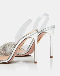 Our Gatsby Sling is a showstopping addition to your evening edit. Made in Italy from shiny specchio leather in shimmery silver, the pointy toe style features dazzling crystals, a PVC slingback strap for a barely-there effect and is balanced on a towering stiletto heel. Covered stiletto heel Pointy toe Padded leather insole Leather insole with 'Aquazzura Firenze' label Product: GASHIGL0-SPP-CCC Made in: Italy