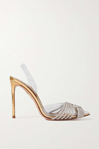 Gatsby Sling 105 crystal-embellished PVC and metallic leather pumps
