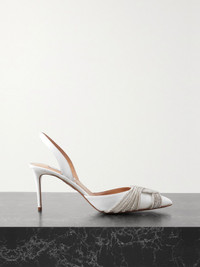 Gatsby 75 crystal-embellished satin slingback pumps White
