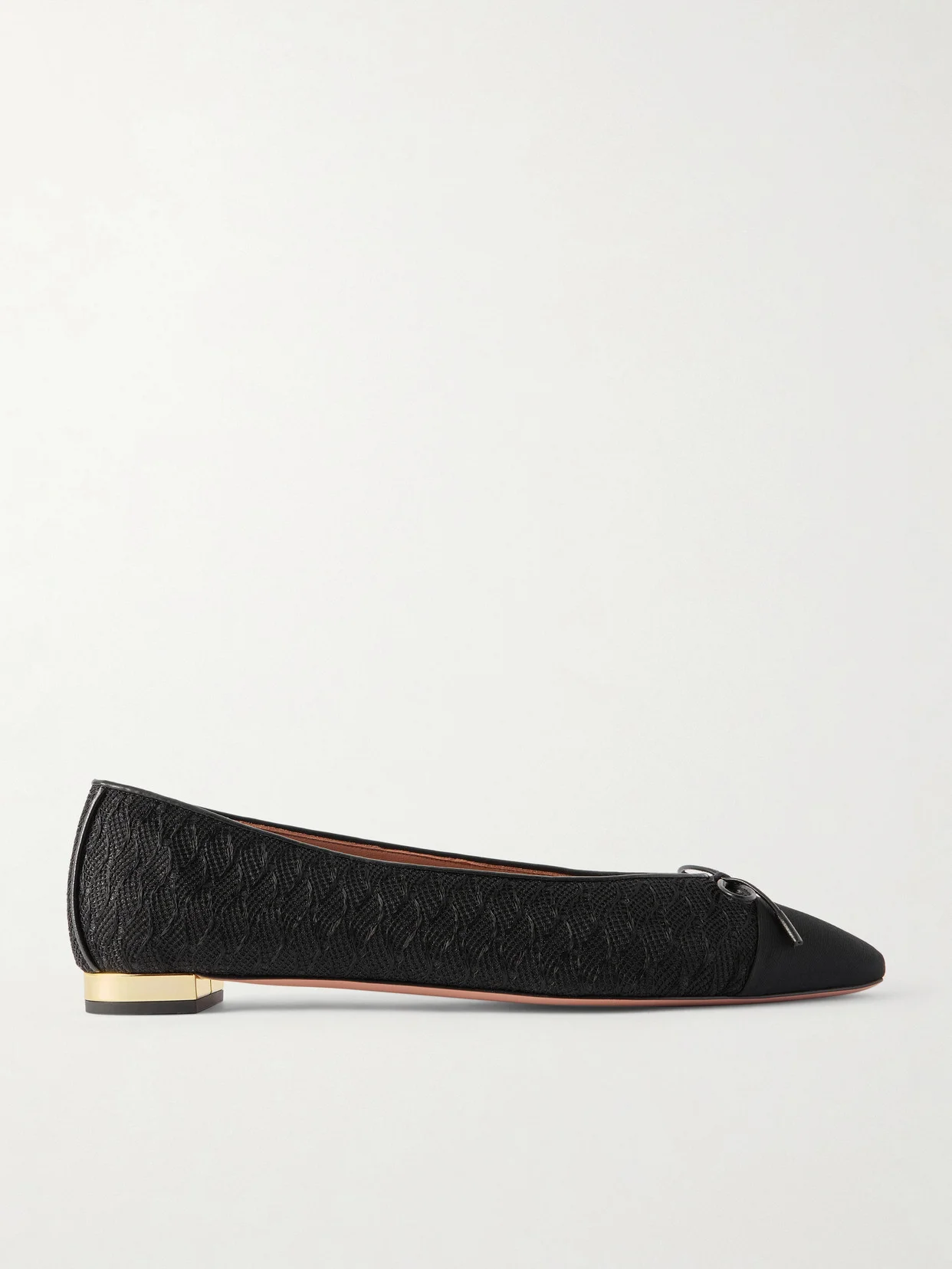Gioia Bow-detailed Grosgrain And Leather-trimmed Crocheted Ballet Flats