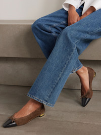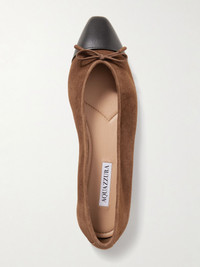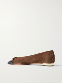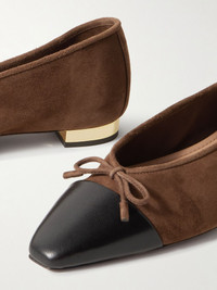 Gioia bow-detailed leather-trimmed suede ballet flats Chocolate
