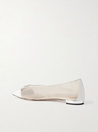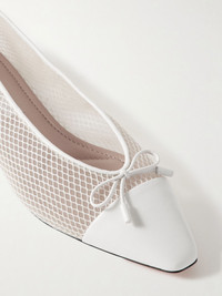 Gioia bow-detailed leather-trimmed mesh ballet flats White