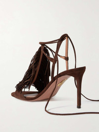 Swishy fringing gives Aquazzura’s ‘Gytane’ sandals that boho-chic feel. Made in Italy from suede, they have almond-shaped open toes and slim ties that wrap around the ankle. Style yours with mini dresses and prairie skirts alike. Size & Fit - Fits true to size, take your normal size - Italian sizing Details & Care - Heel measures approximately 85mm/ 3.5 inches - Chocolate suede (Goat) - Ties at ankle - Designer color: Espresso