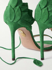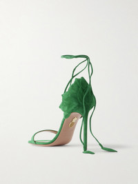 Aquazzura's 'Hibiscus' sandals are inspired by the beauty of tropical flowers. Crafted in Italy from soft suede, they have leaf-shaped cutouts covering the heel and slim straps that elegantly wrap around the ankles. The stiletto heels offer 105mm of towering lift. Small to size. See Size & Fit notes.