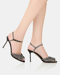 If glamour is your ultimate desire, look no further than the Hold Me Crystal Sandals. Expertly crafted in Italy from black satin, they're embellished with glistening square-cut gemstones that shimmer with every step and set on 85 mm stiletto heels for the perfect amount of lift. Adjustable buckle closure Stiletto heel Crystal embellishments Padded leather insole Signature logo detailing Product: HMCMIDS0-SAT-000 Made in: ITALY