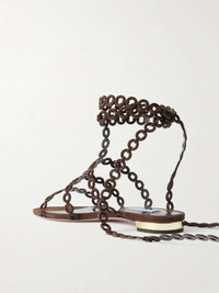 EDITORS'NOTES Inspired by gladiator styles, Aquazzura's sandals have been crafted in Italy from soft suede. They feature straps with circular cutouts that tie at the knees and gold-tone block heels. SIZE & FIT - Fits true to size, take your normal size - Italian sizing DETAILS & CARE - Heel measures approximately 10mm/ 0.5 inches - Dark-brown suede (Goat) - Ties at ankle