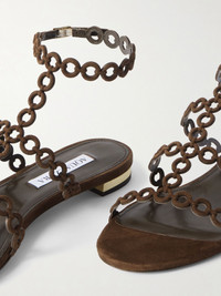 Aquazzura's 'Infinity' sandals have been made in Italy from suede in a caged, gladiator-inspired silhouette. The circular cutouts along the straps instantly set them apart from other styles, as do the gold-tone 10mm heels. Small to size. See Size & Fit notes. Size & Fit - Fits small to size, take a half size larger than normal - Italian sizing Details & Care - Heel measures approximately 10mm/ 0.5 inches - Dark-brown suede (Goat) - Buckle-fastening ankle strap - Designer color: Espresso