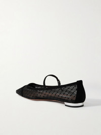 Juliette velvet-trimmed embroidered mesh ballet flats Black