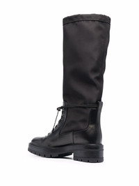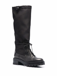lace-up detail boots black leather knee-length drawstring fastening front lace-up fastening round toe low ridged heel Made in Italy Composition Sole: Rubber 100% Top: Calf Leather 52%, Polyamide 48% Lining: Nappa Leather 100% SIZE & FIT Measurement HEEL 1.96 in(5 cm) HEIGHT 15.74 in(40 cm) PLATFORM 1.18 in(3 cm)