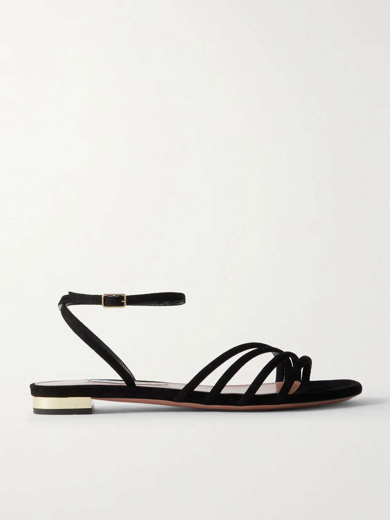 Aquazzura's 'Latour' sandals feel a touch more elevated than other flat styles thanks to their gleaming gold-tone heels. They're made from smooth suede with slender crossover straps at the toes. Wear them everything from dresses to shorts and jeans.