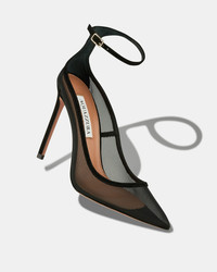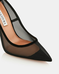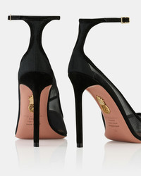 Our Love Affair Mesh Pumps echo elegance with every step. Made from black see-through panels and supple suede, they have elegant pointed toes, sleek ankle straps and timeless stiletto heels offering 105 mm of lift. Zoom in to appreciate Aquazzuras signature gold pineapple on the arch of the sole. Adjustable buckle closure Stiletto heel Padded leather insole Signature logo detailing Product: LAMHIGP0-FMD-000 Made in: Italy