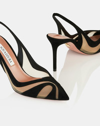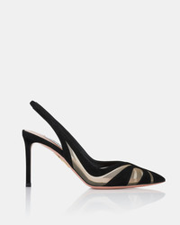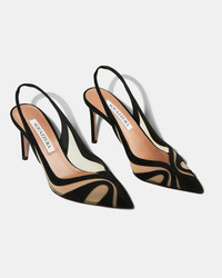 Crafted from wavy foot-framing panels of suede and mesh, these Lune Sling pumps put a fresh spin on the classic silhouette. They have sleek pointed toes and 85 mm heels, so you dont have to reserve them for special occasions. The timeless black shade ensures staying power. Slingback strap Mid heel Padded leather insole Signature logo detailing Product: LNEMIDL0-SFE-000 Made in: Italy