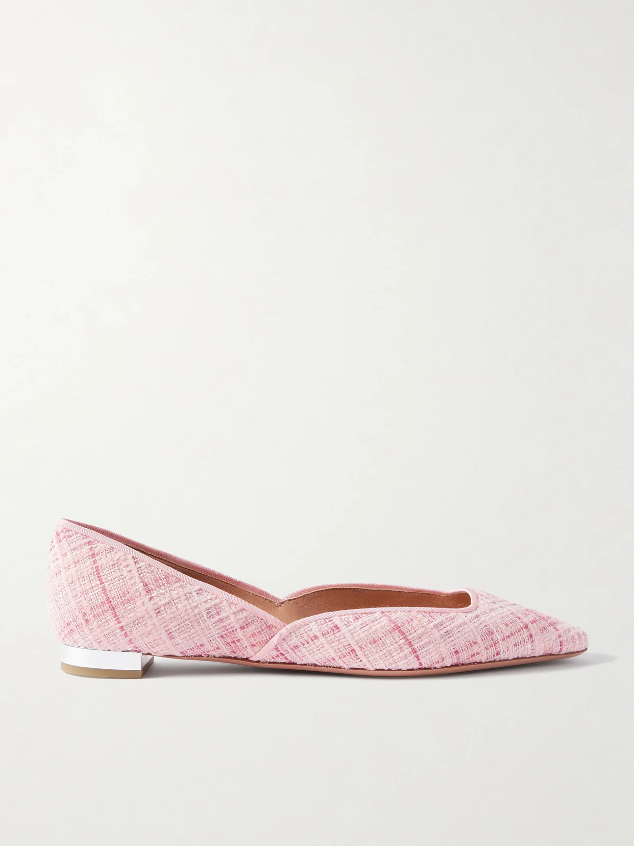 Aquazzura's 'Maia' ballet flats have a d'Orsay silhouette and a sleek silver-tone heel. They've been crafted in Italy from tweed with elongated, squared-off toes and tonal grosgrain trims.