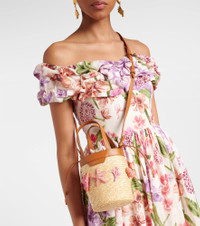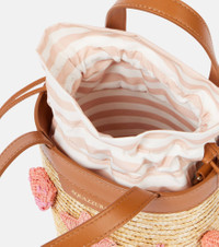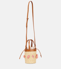 The Marea Small bucket bag from Aquazzura is crafted from raffia with smooth leather trims and playful sea-inspired appliques. It features a drawstring pouch insert, top handles, and a detachable shoulder strap for versatile styling. Product Details - Material: raffia - Lining: fabric - Made in Italy - Designer color name: Natural/Tobacco/Light Gold - Item color: beige, brown - Trim: leather - Internal details: single compartment - Top handles, Adjustable shoulder strap - Closure: drawstring top - Item number: P01025771 Size & Fit - Height 21/15cm-8.5/6" - Diameter 12cm-4.5" - Length of handle 26cm-10" - Length shoulder strap 110cm-43.5"