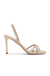 Details - Grosgrain upper with leather sole - Sling-back styling - Leather footbed and lining - Crystal embellished straps at vamp - Almond toe with stiletto heel - Approx 85mm/ 3.34 inch heel - Made in Italy - Our Style No. AAZZ-WZ446 - Manufacturer Style No. MERMIDS0-GRO-NND