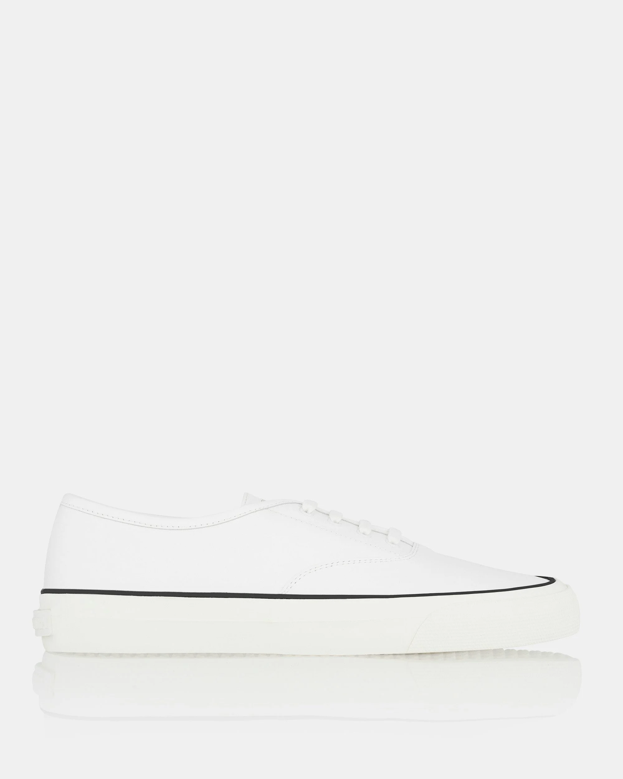 Give your work and weekend ensembles a luxe finish with these Minimalist Sneakers. They're made in Italy from white calf leather contrasted by black trims and subtly stamped with brand lettering. The chunky rubber soles add 30 mm lift. Lace-up front Flatform Padded leather insole Signature logo detailing Product: MINFLASK-CAL-FFF Made in: ES