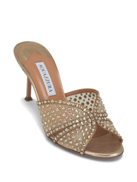 75mm Lover mules Highlights - Gold-tone - Slip-on style - High stiletto heel - Crystal embellishment - Branded footbed Made in Italy Composition Lining: Calf Leather 100% Outer: Fabric 100%, Rhinestone 100% Sole: Calf Leather 100% SIZE & FIT Measurement HEEL 2.95 in(7.5 cm)