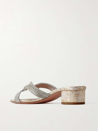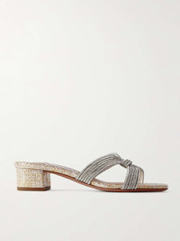 EDITORS'NOTES Aquazzura's 'Muse' mules have wavy silver straps completely encrusted in rows of shimmering crystals - just imagine how prettily they'll sparkle under the low lighting of the dance floor. The 35mm block heel is covered in metallic tweed, adding to its glamorous feel. Wear yours with a midi dress or cropped pants. Small to size. See Size & Fit notes. SIZE & FIT - Fits small to size, take a half size larger than normal - Italian sizing DETAILS & CARE - Heel measures approximately 35mm/ 1.5 inches - Silver leather - Slip on