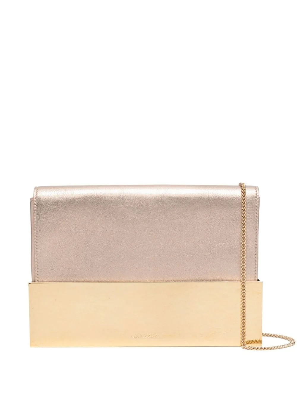 Muse clutch bag Highlights - Gold-tone - Calf leather - Pebbled texture - Metallic finish - Foldover top with magnetic fastening - Detachable chain-link shoulder strap - Polished-box bottom - Contrast lining - Main compartment - Internal card slot - This piece comes complete with a protective dust bag. Made in Italy Composition Outer: Metal 100%, Calf Leather 100% SIZE & FIT Model measurements Height 5 ft 10 in(1.78 m) Bust/Chest 33.46 in(85 cm) Hips 36.22 in(92 cm) Waist 23.22 in(59 cm) Measurement DEPTH 1.57 in(4 cm) HEIGHT 6.69 in(17 cm) STRAP 26.37 in(67 cm) WIDTH 9.84 in(25 cm)