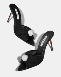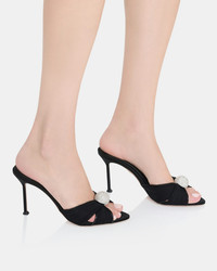 Empowering and seductive, these Mystery Mules are crafted from black chiffon, satin and leather, topped with a crystal-studded sphere for an extra dose of glamour and playfulness. Set on 85 mm heels, they're the perfect plus-one to your favourite party dress. Slip on Stiletto heel Padded leather insole Signature logo detailing Product: MSYMIDM0-CHA-000 Made in: ITALY