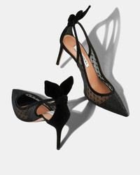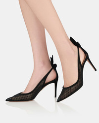 Trends come and go, but our Bow Tie Net Pumps are here to stay. Designed with classic pointed toes, slim 85 mm heels and signature side cutouts, this seasonal iteration is crafted from panels of see-through mesh and supple suede in timeless black. Wear now and cherish forever. Slip-on shoes Mid heel Padded leather insole Signature logo detailing Product: DNNMIDP1-FMS-000 Made in: Italy