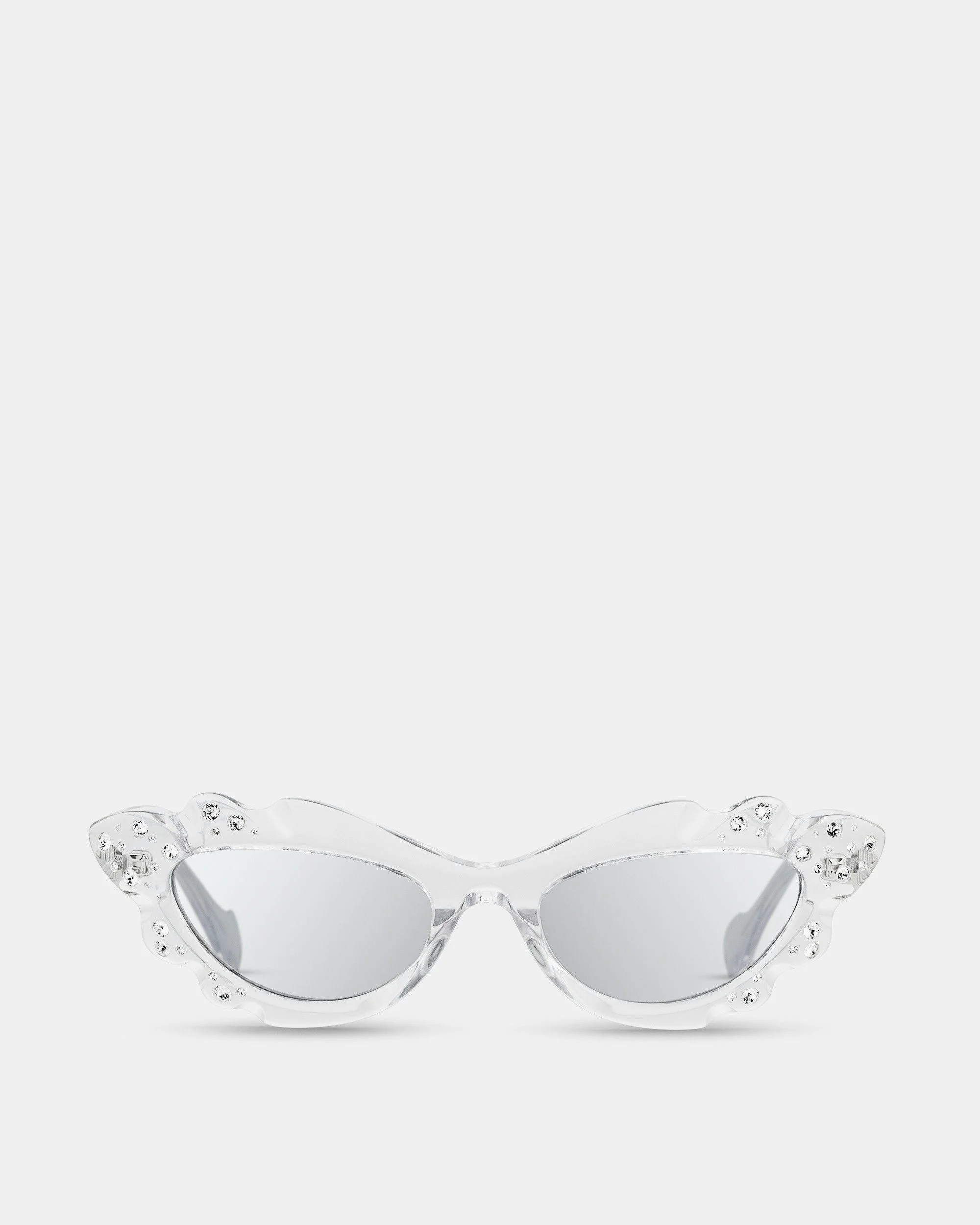 Exquisite from every angle, these sunglasses are crafted from translucent acetate with softly scalloped edges that enhance the retro-inspired upswept shape. Equal parts playful and opulent, they're finished with a scattering of crystals and luminous metal temples with acetate eartips. Upswept cat-eye shape Acetate frame Metal temples with acetate eartips Crystal embellishments Silver mirrored lenses UV protection Signature logo detailing Silver branded case and aquamarine cleaning cloth Made in Italy Product: PBCEYES0-ATC-TSY Made in: ITALY