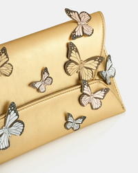 Aquazzura's collections are filled with artful surprises, and this Papillon Envelope Clutch proves it. The sleek silhouette is crafted from metallic leather in a lustrous gold hue and scattered with pastel-toned butterflies – seemingly mid-flight – bringing a whimsical flourish to the timeless shape. Complete the look with the matching sandals. Tuck-in flap closure Signature logo detailing Aquamarine dust bag Product: PPLCLUC0-NPL-SOL Dimensions: 26L x 13H x 2D cm Made in: ITALY