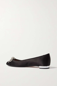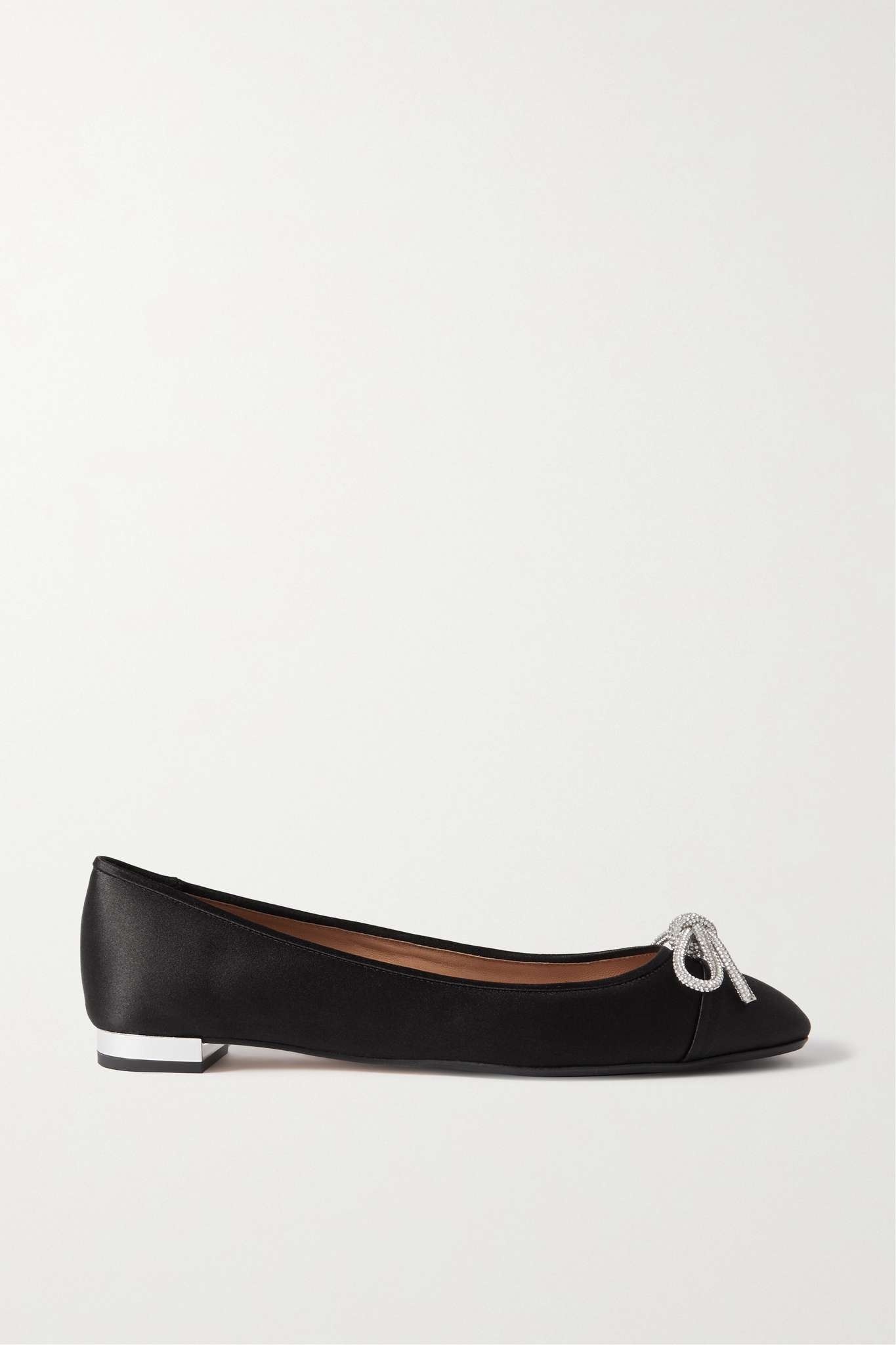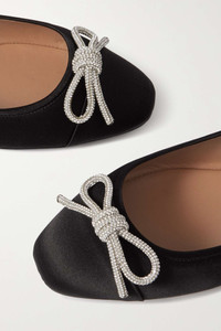 EDITORS'NOTES Aquazzura's ballet flats have been put together by skilled Florentine artisans, well-versed in the art of shoemaking. They're made from smooth satin with supple leather linings and are topped with shimmering crystal bows. Wear yours with a simple tee and trusty denim. SIZE & FIT - Fits true to size, take your normal size - Italian sizing DETAILS & CARE - Heel measures approximately 15mm/ 0.5 inches - Black satin - Slip on