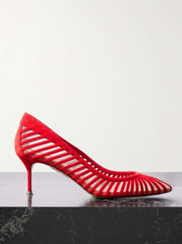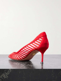 EDITORS'NOTES Aquazzura's 'Passions' pumps are made from strips of suede layered over sheer mesh to create a unique, caged design. They have sleek pointed toes and rest on comfortable 65mm heels. You don't have to reserve them for special occasions. SIZE & FIT - Fits true to size, take your normal size - Italian sizing DETAILS & CARE - Heel measures approximately 65mm/ 2.5 inches - Red suede (Goat), beige mesh - Slip on