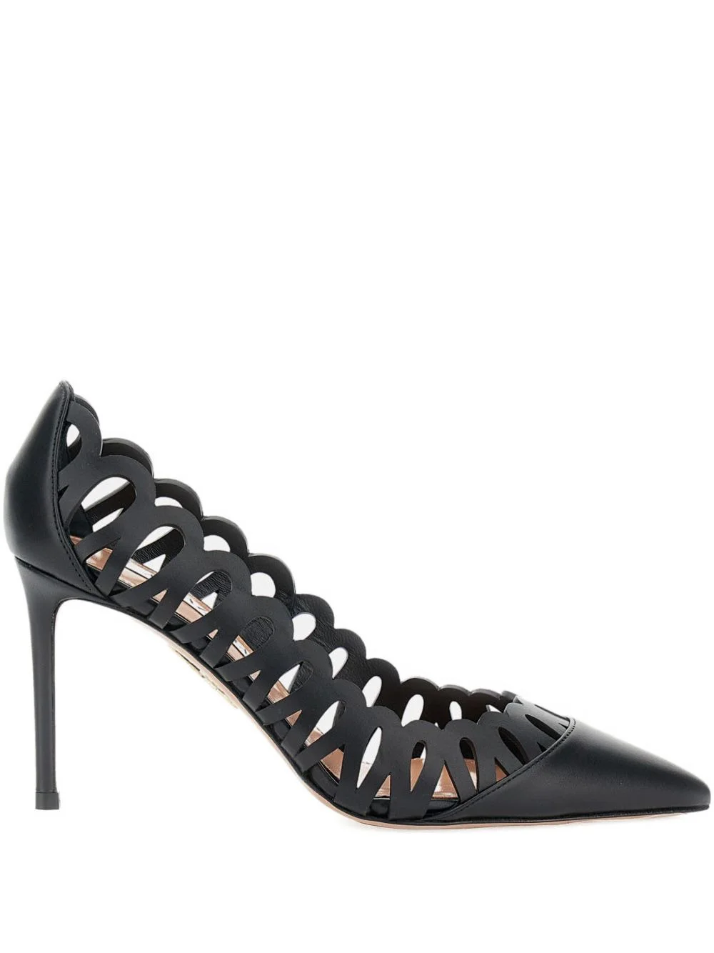 85mm perforated leather pumps Highlights - Black - Leather - Pointed toe - Stiletto heel - Scalloped cut-outs Made in Italy Composition Outer: Calf Leather 100% Lining: Leather 100% Sole: Leather 100%