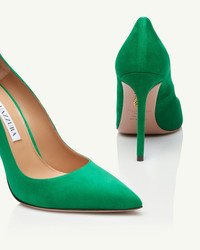 Our Purist Pump is an essential wardrobe staple that will take you from season to season. Italian crafted from velvety suede in lavish rich emerald, the sleek pointed toe style is balanced on a slender, stiletto heel. Pair with a chic mini. Covered stiletto heel Pointy toe Padded leather insole Leather insole with 'Aquazzura' label Product: PURHIGP1-SUE-REM Made in: Italy