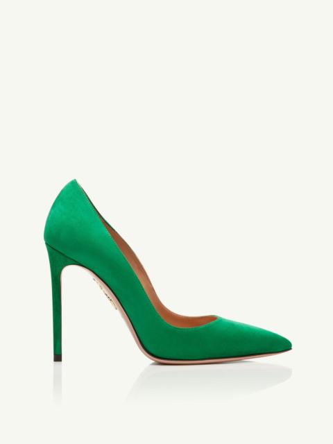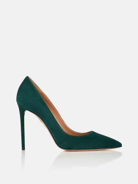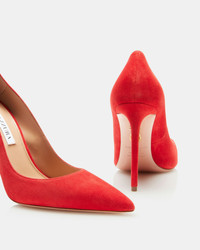 Our Purist Pump is an essential wardrobe staple that will take you from season to season. Italian crafted from buttery suede in vivid lipstick red, the sleek pointed toe style is balanced on a slender, stiletto heel. Keep the vibrant shade on display with a midi dress. Covered stiletto heel Pointy toe Padded leather insole Leather insole with Aquazzura Firenze label Product: PURHIGP1-SUE-F00 Made in: Italy