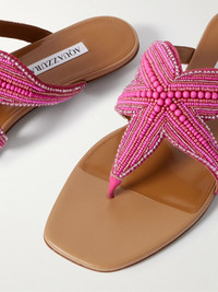 Aquazzura's sandals are designed to look like star fish - the scores of beads resemble the natural ribbed finish they have. They're made from leather and have square toes and slight heels. Pack yours for coastal vacations. Size & Fit - Fits small to size, take a half size larger than normal - Italian sizing Details & Care - Slight heel - Pink leather - Slip on