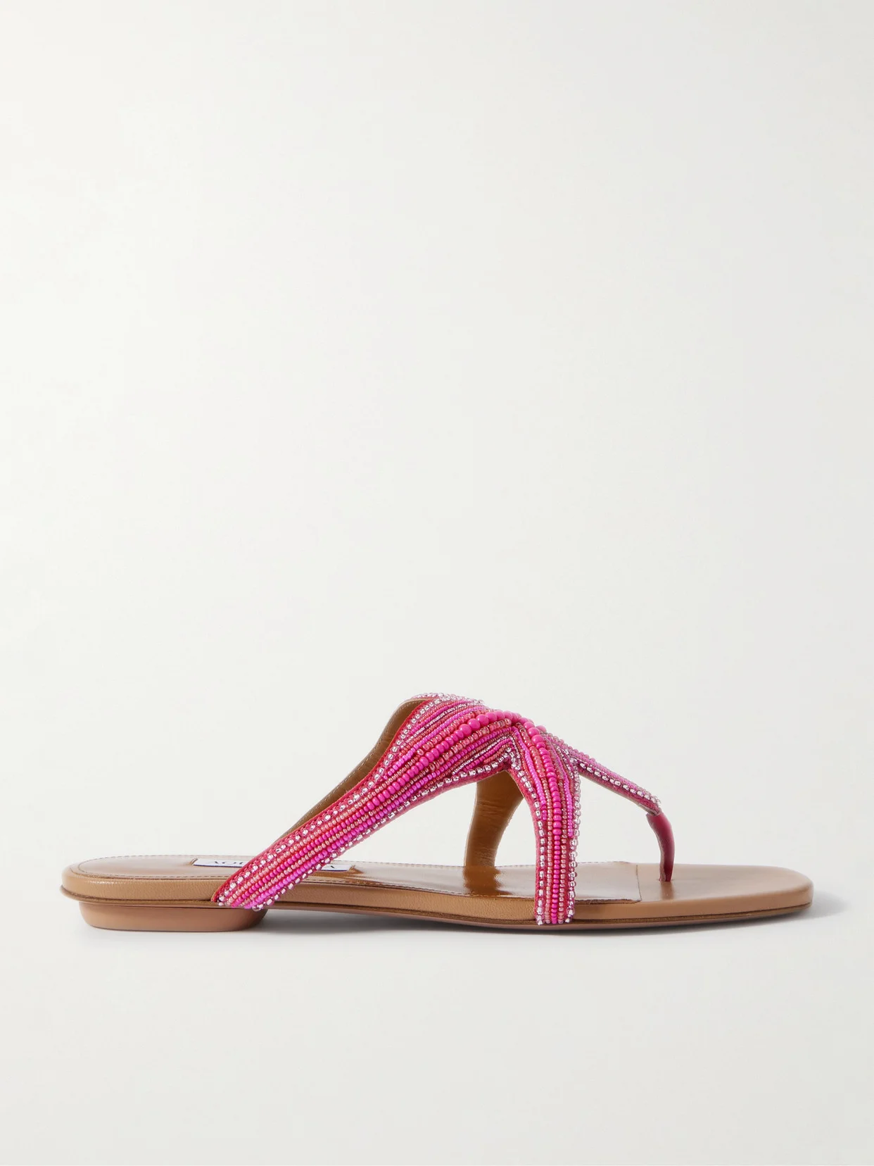 Aquazzura's sandals are designed to look like star fish - the scores of beads resemble the natural ribbed finish they have. They're made from leather and have square toes and slight heels. Pack yours for coastal vacations.