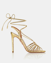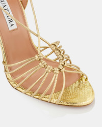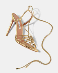 With their decadent metallic texture and intricate arrangement of straps, these Ritmo Sandals feel both airy and architectural. They're crafted from soft gold leather and set on high stiletto heels, offering 105 mm of lift. Adjust the ankle ties for a secure fit. Ankle ties Stiletto heel Padded leather insole Signature logo detailing Product: RTMHIGS0-NLT-SOG Made in: ITALY