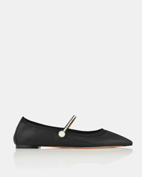 Mary Janes may be having a moment, but invest in these timelessly chic Romy Pearl Flats, and youll cherish them for years. Crafted from black leather and trimmed with grosgrain for comfort, they have elegant pointed toes and delicate pearl embellishments that trace the thin straps – subtle yet statement-making. Adjustable buckle closure Flat heel Padded leather insole Signature logo detailing Product: RYPFLAA0-NPG-000 Made in: Italy