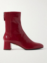 Named after the Parisian shopping street, Aquazzura's 'Saint Honore' boots capture the timelessness of French style. They're made from glossed-leather for a sock-like fit and detailed with stitching along the ankle and vamp that recalls traditional Chelsea designs. Wear yours with cropped jeans. Size & Fit - Fits true to size, take your normal size - Italian sizing Details & Care - Heel measures approximately 35mm/ 1.5 inches - Claret glossed-leather (Lamb) - Zip fastening along back