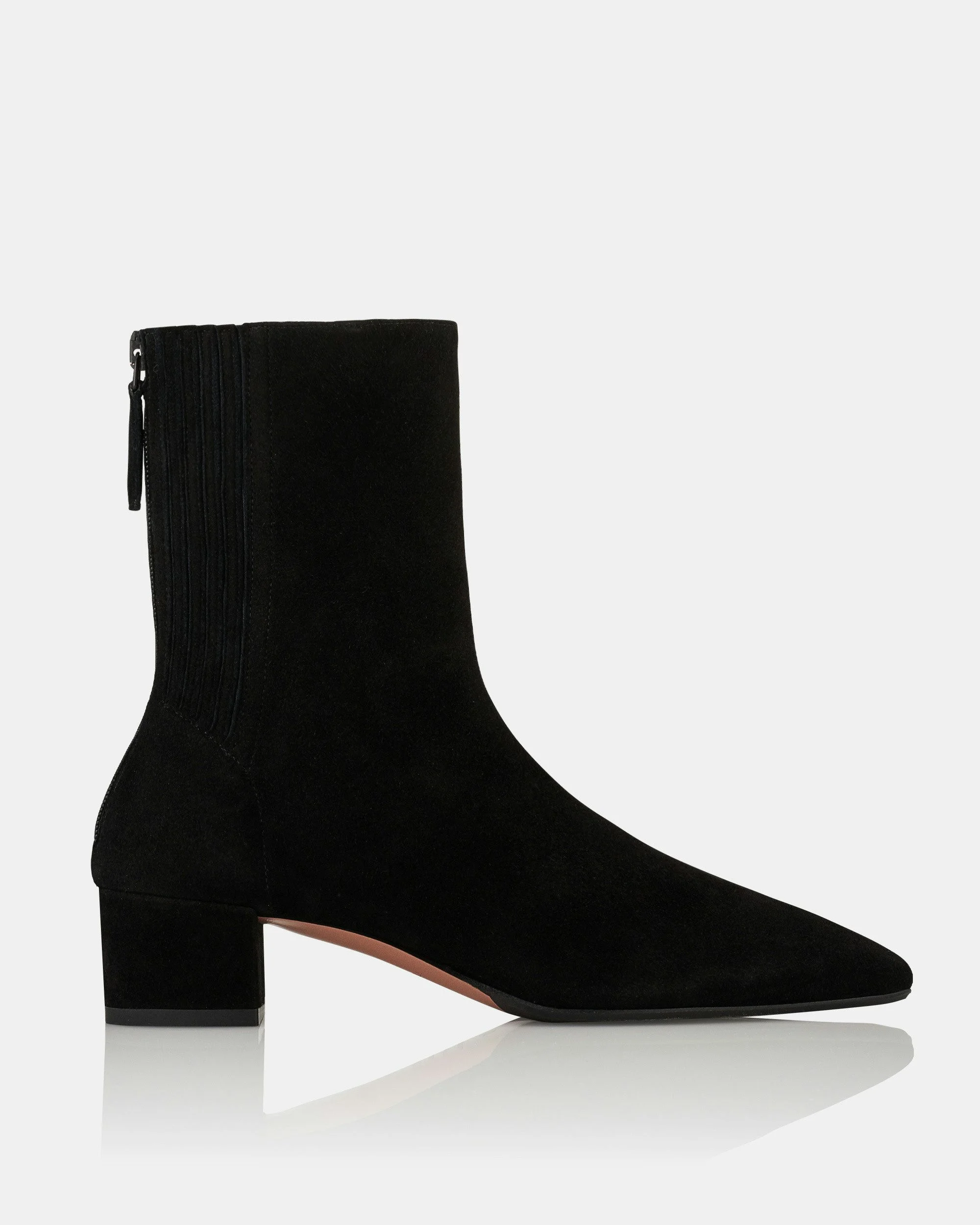 Chic and versatile without compromising on comfort, these Saint Honore Booties are expertly made in Italy from soft suede in classic black that goes with everything. They have flattering, softly pointed toes, and 35 mm block heels that give them a subtle retro feel. Back zipper Low heel Padded leather insole Signature logo detailing Product: SHOMIDB8-SUE-000 Made in: Italy