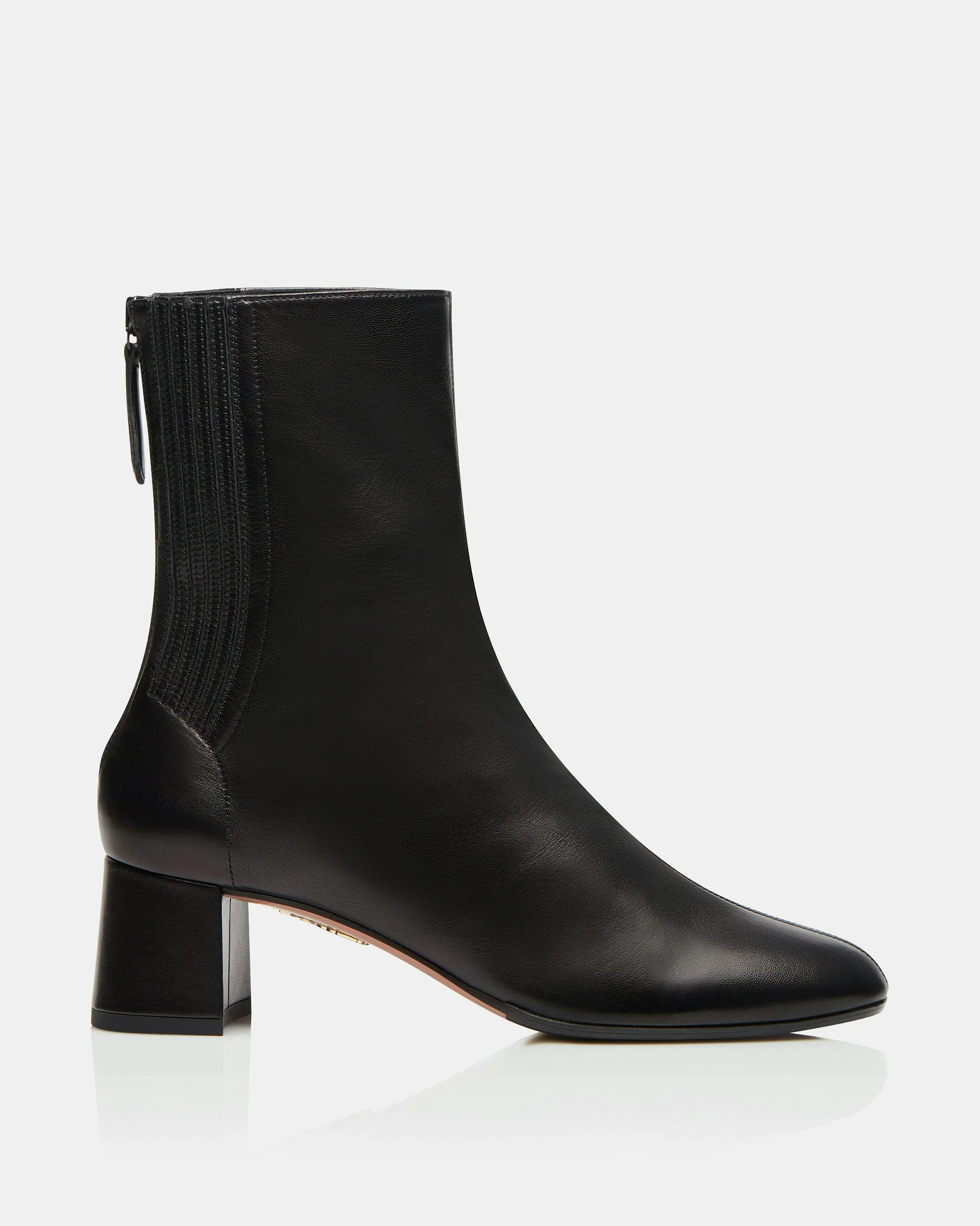 Our Saint Honore Boots are an essential addition to any wardrobe. The classic silhouette is crafted in Italy from supple nappa leather in rich black. The pair features a chic pointed toe, a back zip for ease of dress and set on a mid block heel for all-day comfort. FITS SLIGHTLY LARGE TO SIZE. Covered block heel Back zipper closure Leather insole with 'Aquazzura Firenze' stamped in gold Leather sole with embossed Pineapple logo' Product: SHOMIDB0-NAP-000 Made in: Italy