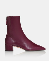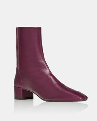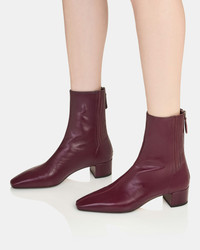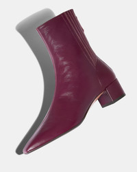 Endlessly wearable, the chic silhouette of our Saint Honore Bootie is crafted in Italy from glossy nappa leather in a rich blackberry-toned hue. Designed with flattering, softly pointed toes, elasticated panels and 35 mm block heels, they blend all-day comfort with a subtle retro feel – perfect for elevating everyday looks. Back zipper Low heel Padded leather insole Signature logo detailing Product: SHOMIDB8-NSI-BKR Made in: ITALY