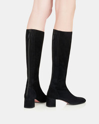 Every woman's wardrobe should include a timeless knee-high boot such as our Saint Honore'. Made in Italy from velvety suede in rich black, the style is shaped to a feminine, rounded toe and is finished on a comfortable, mid block heel. Work yours with anything from denim to dresses. Covered block mid heel Rounded toe Back zip Leather insole with 'Aquazzura' label Product: SHOMIDB7-SUE-000 Made in: Italy